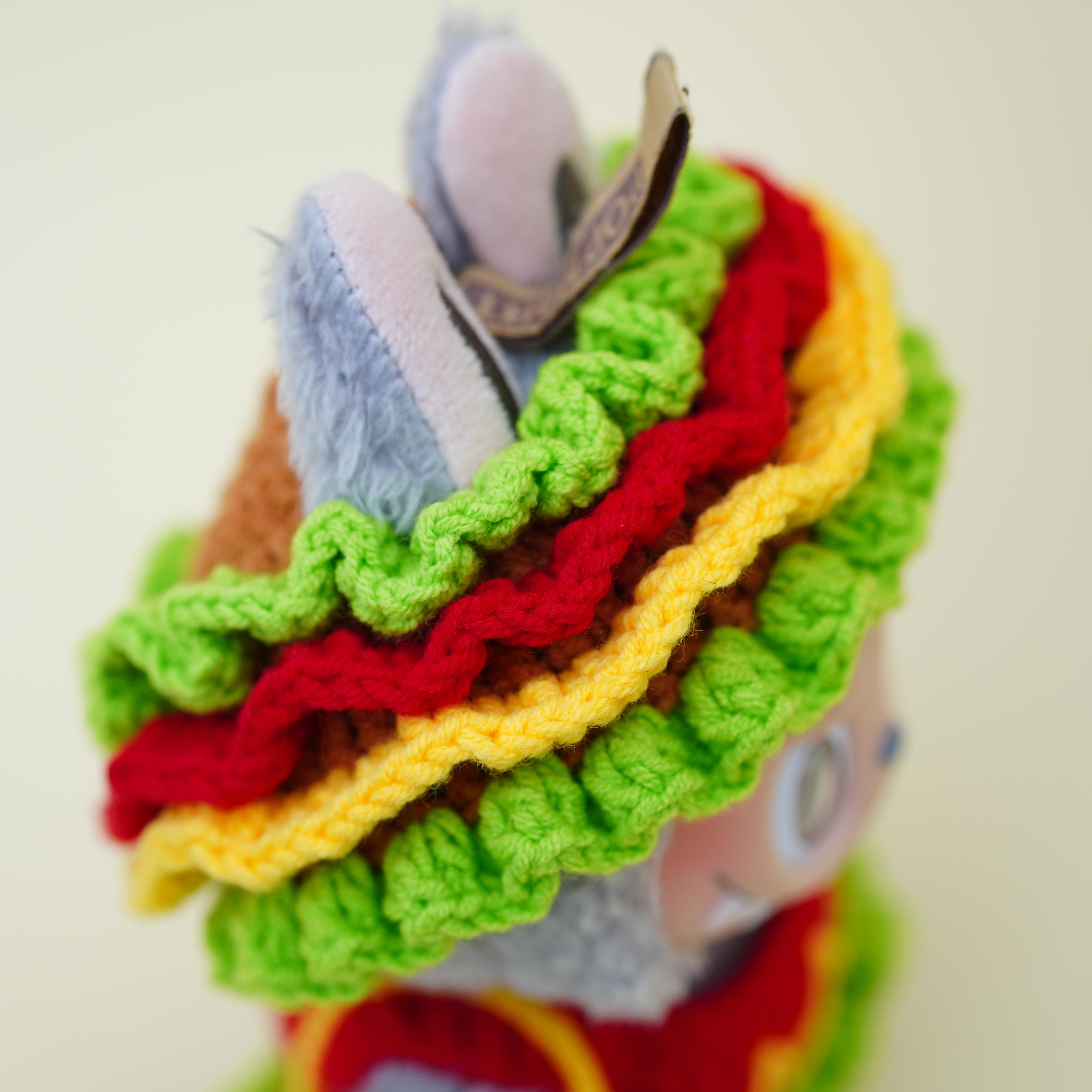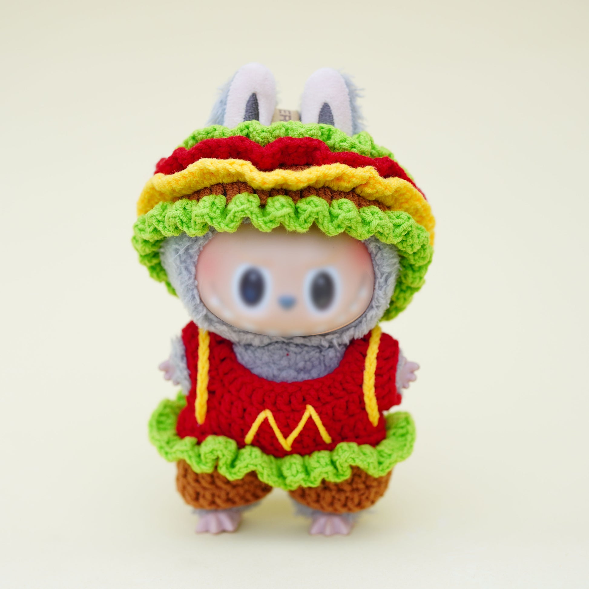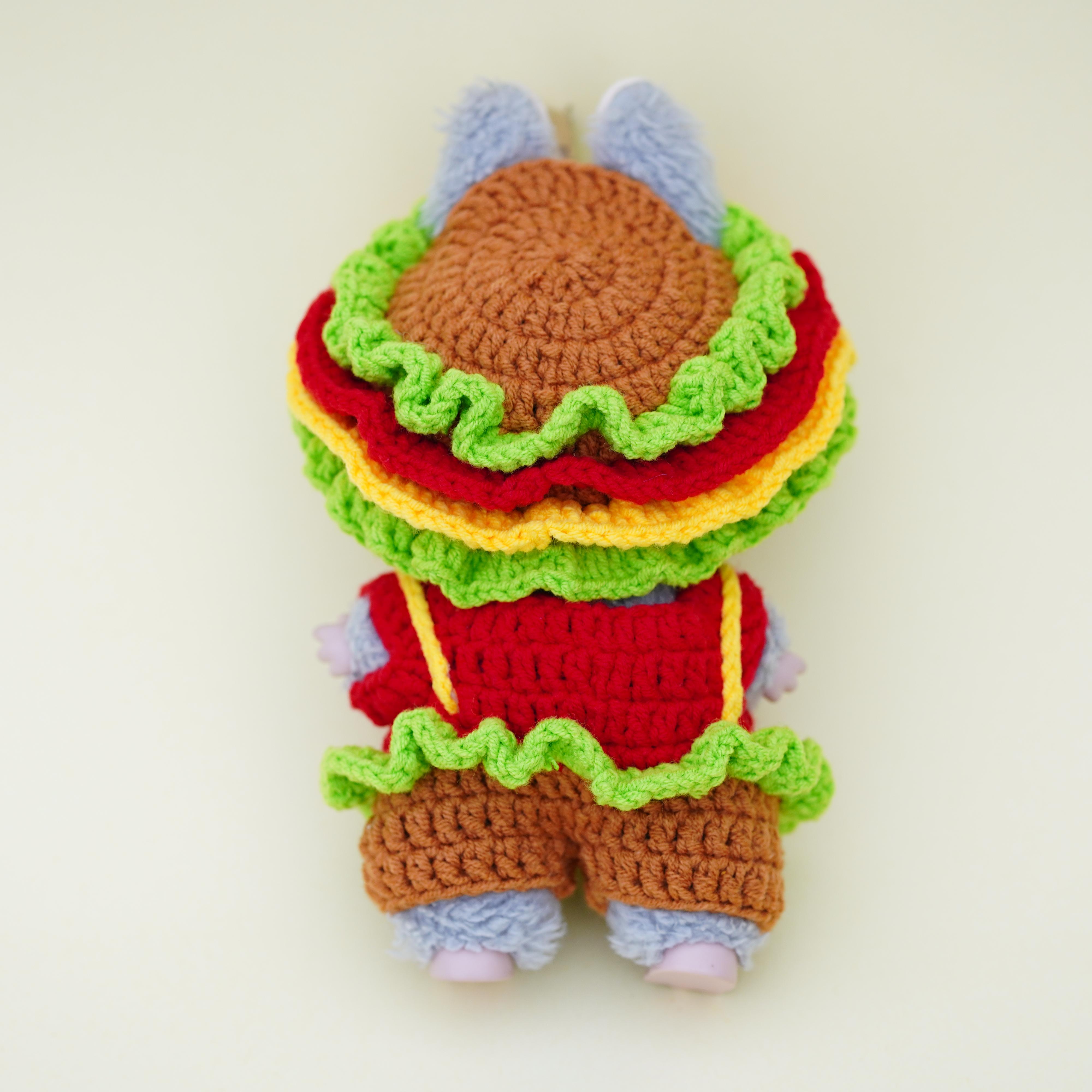 Hand-crocheted hamburger suit for labubu