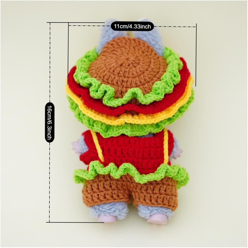 Dress up your Labubu with a playful twist! This Handmade Crochet Hamburger Outfit is designed to make your 17cm Labubu look like the cutest burger in town. With vibrant layers of red, yellow, green, and brown yarn, it perfectly captures the fun and charm of a delicious hamburger.